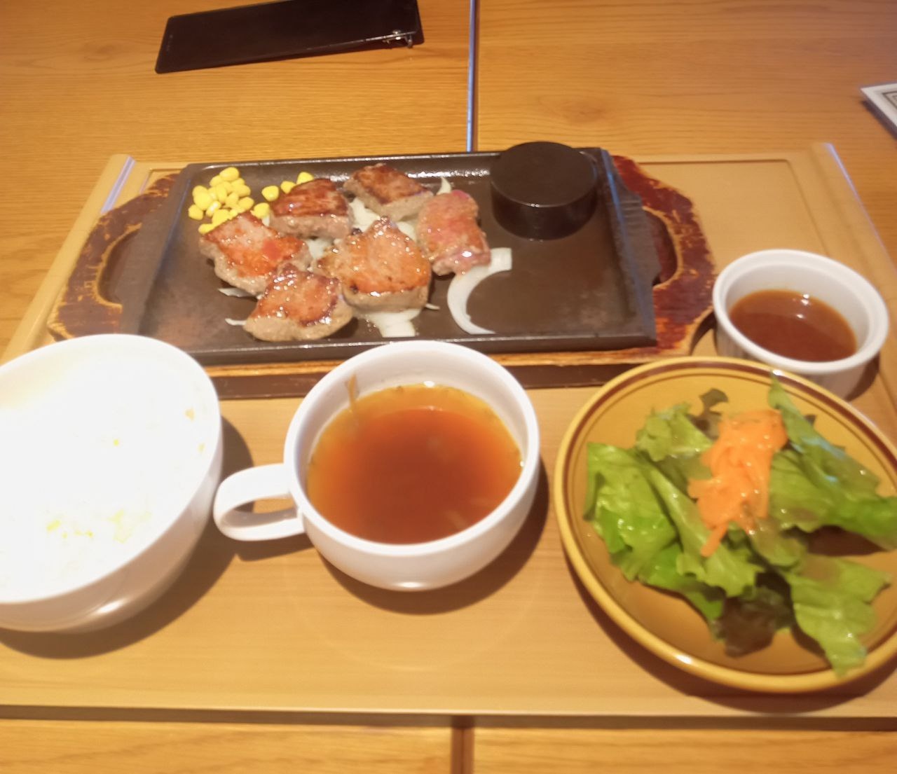 ランチメニューはサーロインステーキやハンバーグのプレートや鉄板メニューがありました。ディナーでも、ハンバーグやミックスフライのプレートメニューがあります。