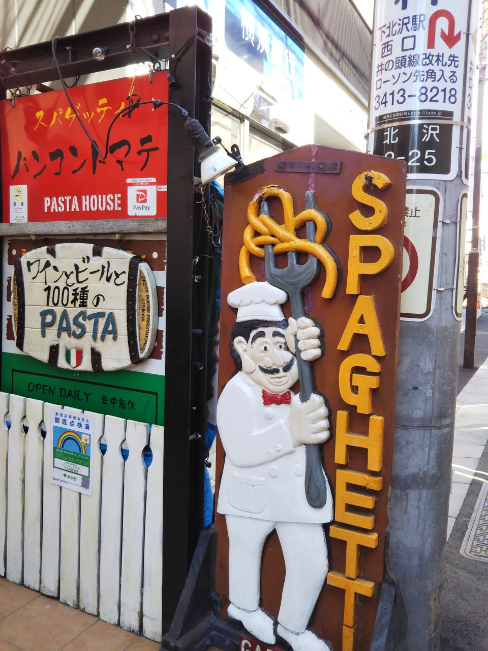 パンコントマテ 下北沢駅前店、再訪です。下北沢駅から徒歩で数分の場所にあります。入口に看板が色々あり、見つけやすい店だと思います。平日のランチに行ってきました。ランチサービスは16時までやっているので、ちょっと遅めのランチでもOKです。パスタが色々ありますが、味は普通です。