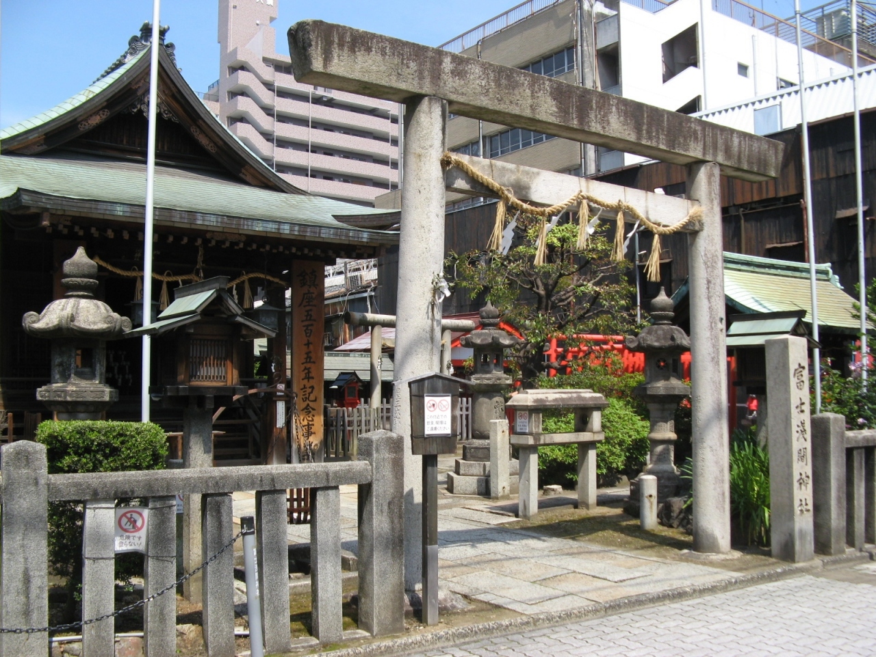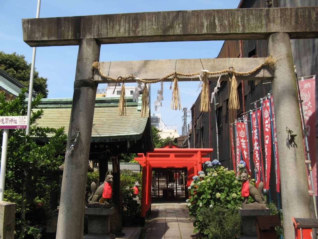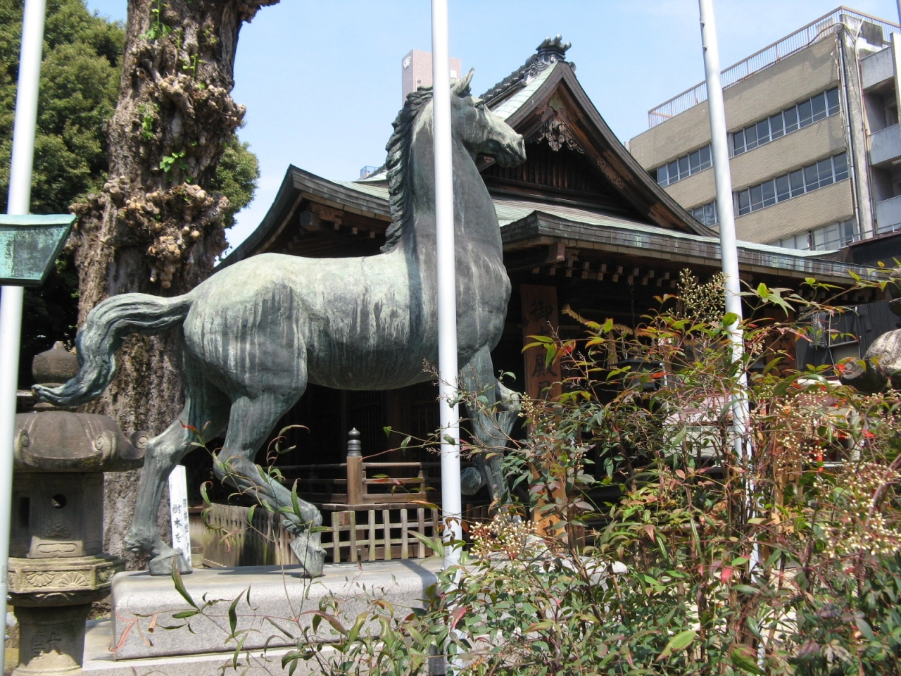 大須商店街の一角に鎮座されています。由緒書きによると、明応四年(1495年)駿河の浅間神社から分霊を勧請して創建されたとのこと。境内にはまねき稲荷や神馬像などがあります。ビルに囲まれた小さな神社ですが歴史を感じる神社で静かに参拝できました。