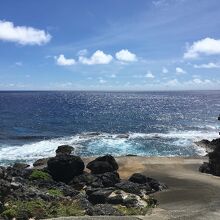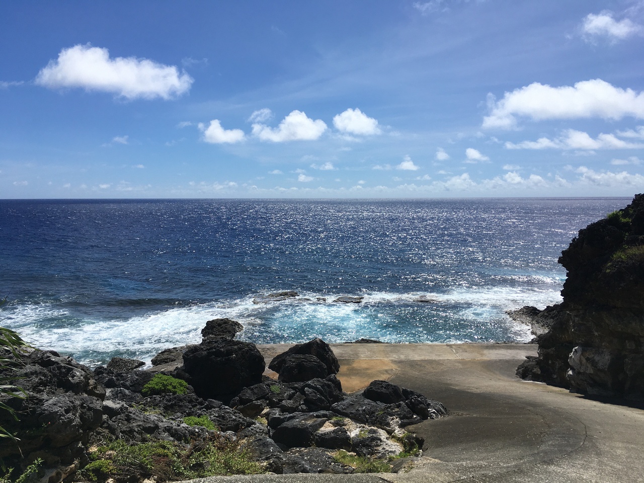 南大東空港ターミナルビルから自転車で5分ほどです。断崖絶壁の海岸で囲まれた南大東島の周囲には砂浜がありません。そこで昔、旧海軍が測量のため立てた棒があるこの地に岩礁をくり抜いて人工のプールを造りました。訪問時は台風の影響で波が高く、はっきりとプールが見えませんでしたが、うっすらとそれらしき部分は見て取れました。波が穏やかな時には大東ブルーの美しい海辺で泳ぐことができることでしょう!