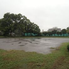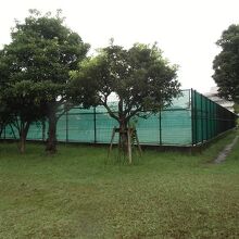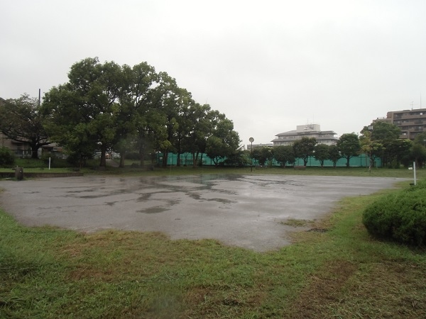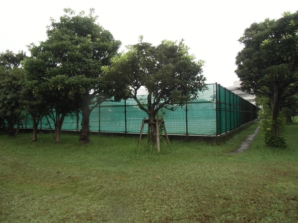 遊具等は無く、殺風景な広場とテニスコートがあるのみ。