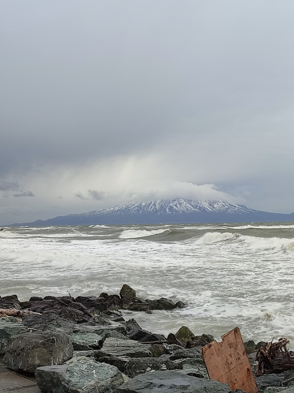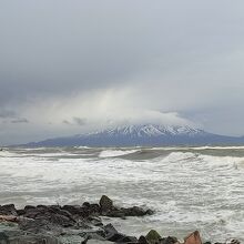 ノシャップ岬から海岸沿いを南に向かってドライブしたのですが、途中から向かって右側に海越しにその姿をはっきりと見ることができました。曇天のため全景を見ることはなかなかできなかったのですが、シルエットはさすがに綺麗でした。