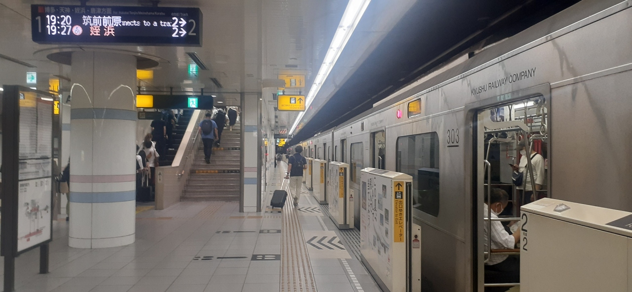 飛行機を降りるとすぐ真下に福岡地下鉄の駅があり、博多まで2駅5分で行けます。