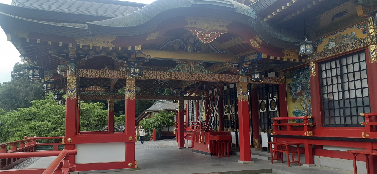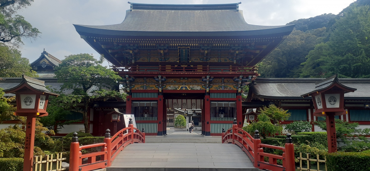 朱色の鮮やかな社殿や門を始めたとする建物群がとても印象的でした。
