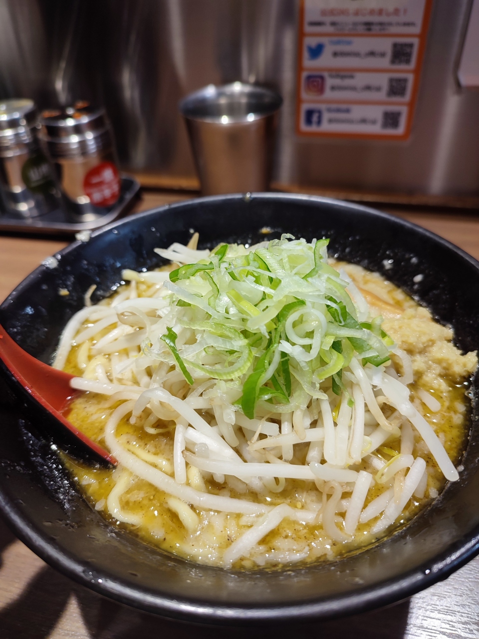 研究された味噌ラーメンが大変おいしかったです。麺は太目でニンニクのにおいが強烈です。ネギもおいしかったです。