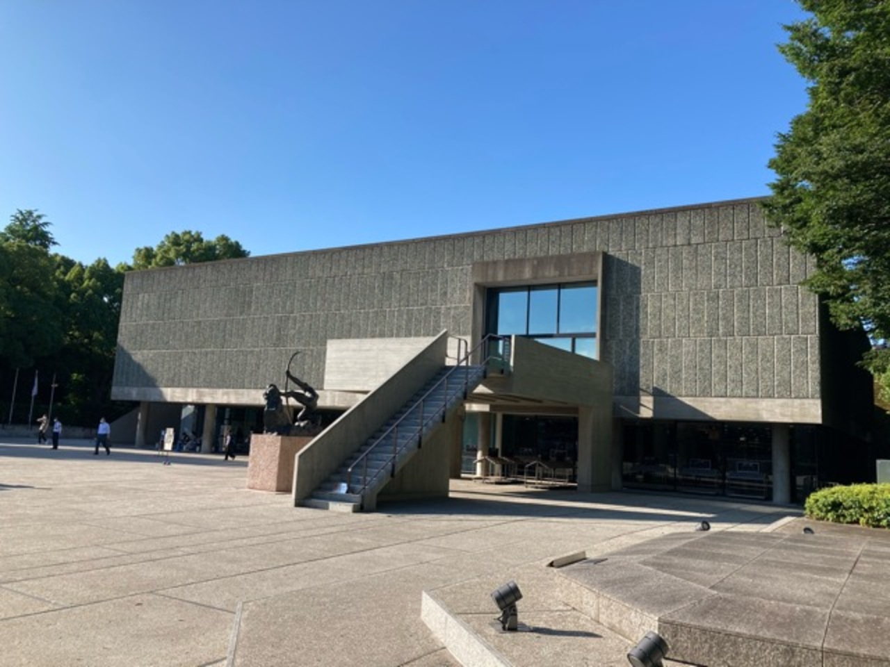展示室の屋根とは、ロダンの考える人などの彫刻がおいてある前庭の部分です。つまり、前庭の地下が展示室であり、その屋根の防水工事ということです。