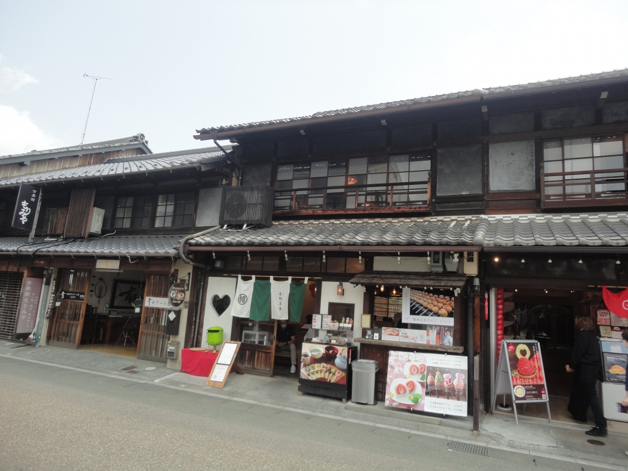 名鉄犬山駅を出て、歩いて犬山城へ向かうと、レトロな建物が並ぶ本町通りを通ることになります。本町通りから路地に入っても、レトロな建物はいくつかありましたが、観光客向けのお店が並ぶのは本町通りだと思います。お土産屋さんや食べ歩きできるスイーツ等を売るお店が多かったです。民家として残されている建物は少なく、観光客が大勢行き来するため、なんとなく作り物っぽい気もしてしまいました。