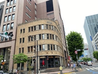 新橋駅の近く赤れんが通りの北の端の交差点わきにこの建物はあります。とてもレトロな感じが何とも良い建物です。周囲の高い建物と比べると独特の雰囲気をかもし出しており、信号待ちの間、このビルを見ていても飽きません。