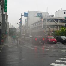 松本市街地の中心部にある通りで、女鳥羽川に架かる千歳橋から南へと続く道です。千歳橋からまっすぐ北へと行くと松本城です。松本のメインストリートといってもいい通りで、交通量も多く、銀行、松本郵便局、新聞社ビルなどもあります。歩道も整備されて、電線が地中化されているので、道路が広く感じます。