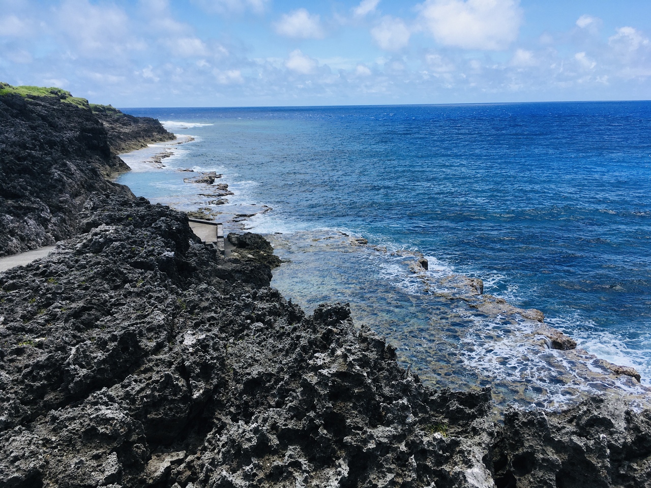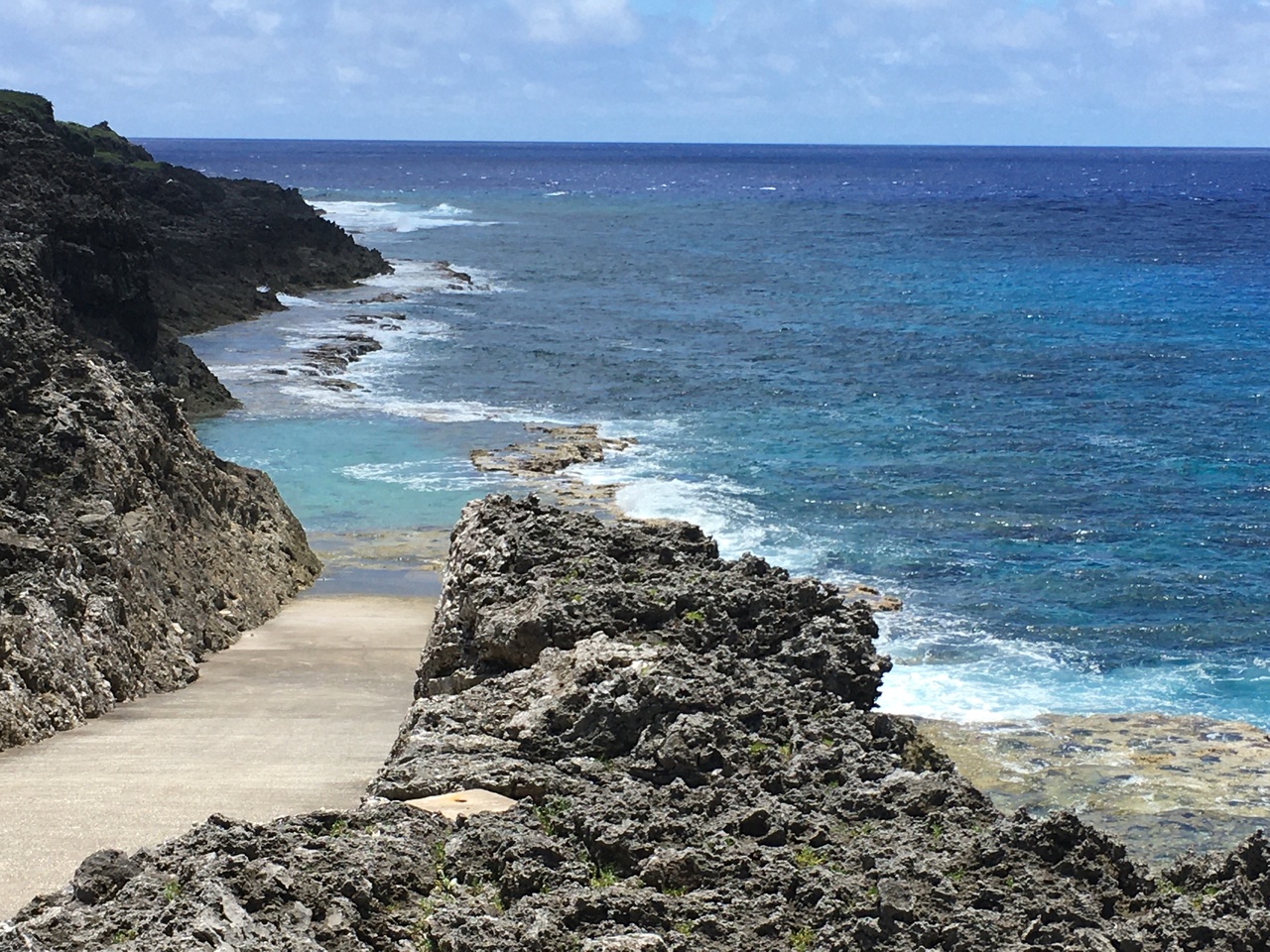 南大東島集落から自転車で20分ほどです。島の東海岸にある「海軍棒」プールと同じく、岩場をくり抜いた人工のプールです。大東島は周囲を断崖に囲まれているため子どもたちが海に入れるのはこのような人工のプールだけです。訪問時は台風の影響でほとんど形が見えないほど波が高く、荒々しい海岸でした。穏やかな一日にのんびりとシュノーケリングができたら幸せでしょう。
