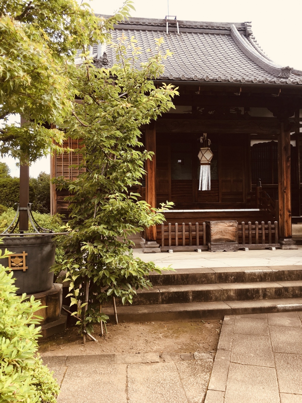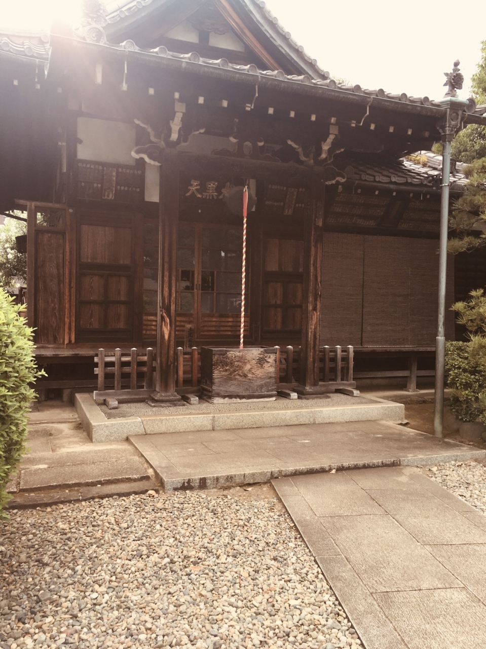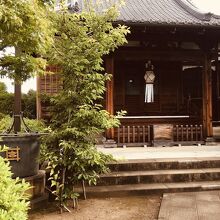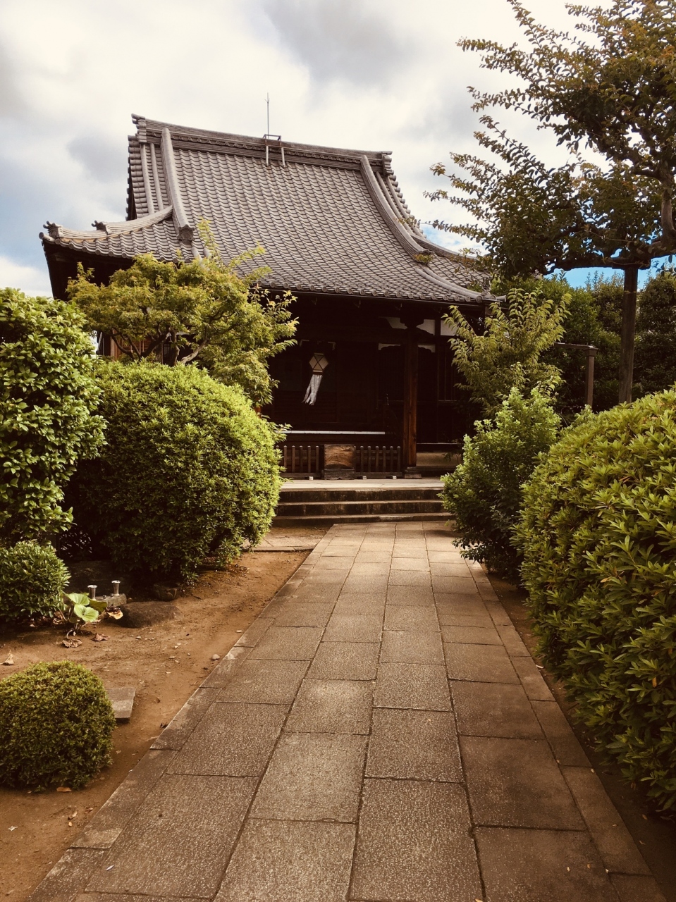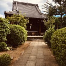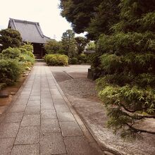 御殿坂を上がり切った右側の道の角にあり、門が古く、年季がある門でした。本堂まで道が一直線に伸びていて、本堂は屋根が大きく建物の半分ぐらいの大きさでした。横には大黒天の建物があって、木々が整備された境内でした。