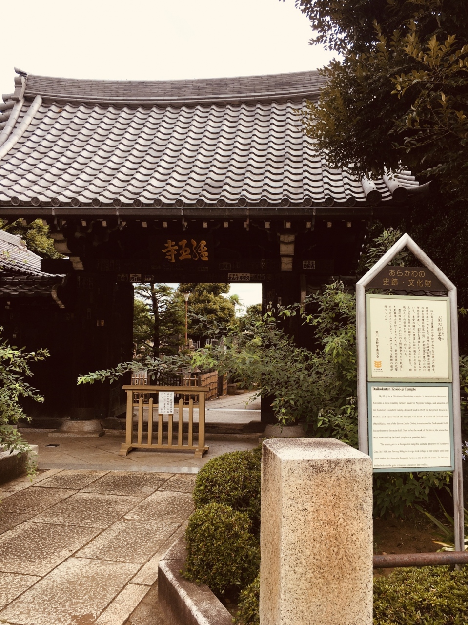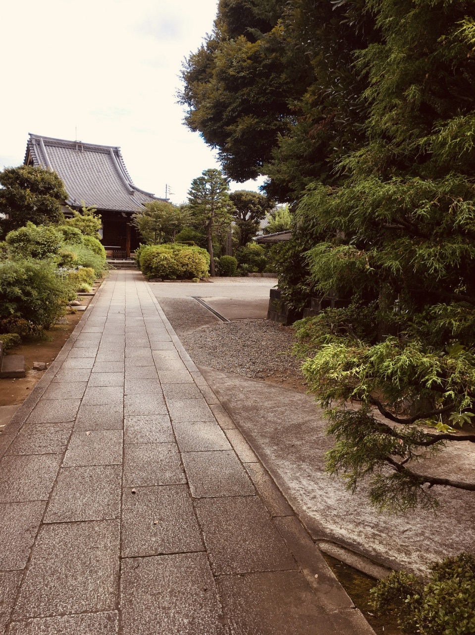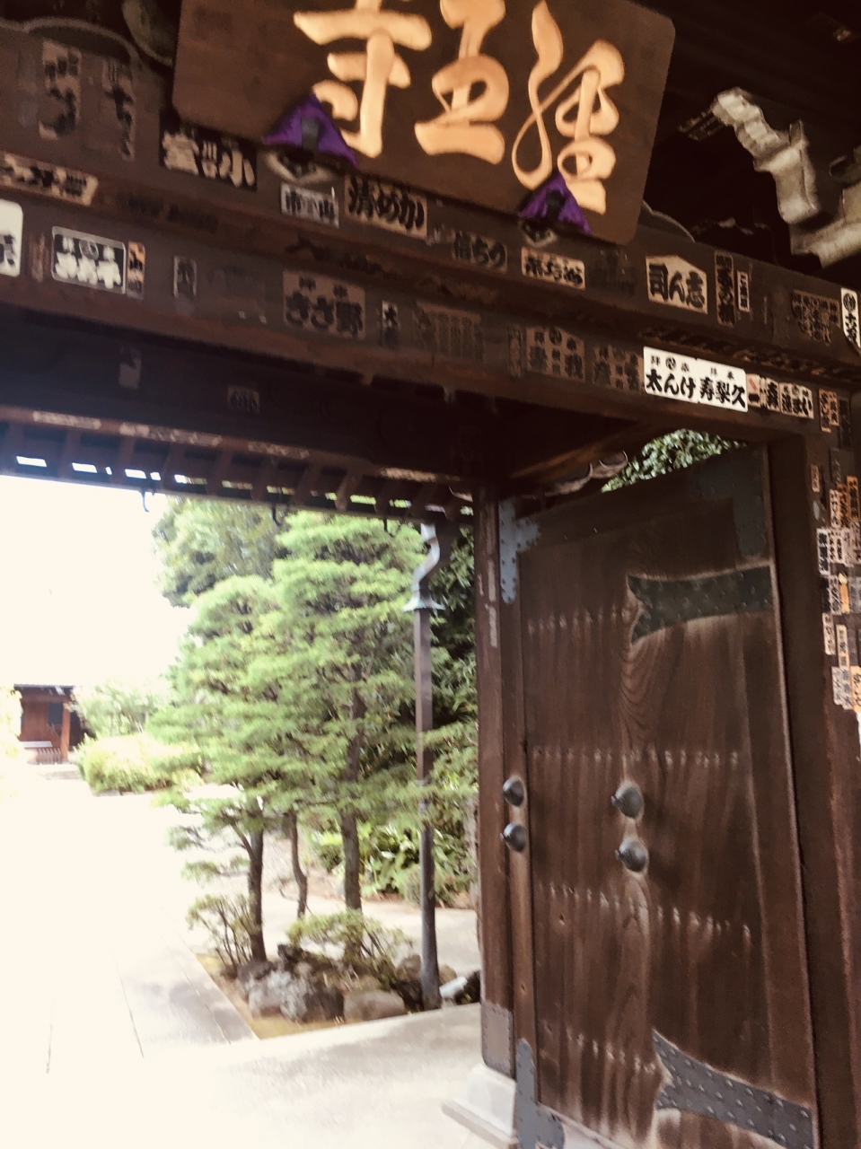 御殿坂を上がり切った右側の道の角にあり、門が古く、年季がある門でした。本堂まで道が一直線に伸びていて、本堂は屋根が大きく建物の半分ぐらいの大きさでした。横には大黒天の建物があって、木々が整備された境内でした。