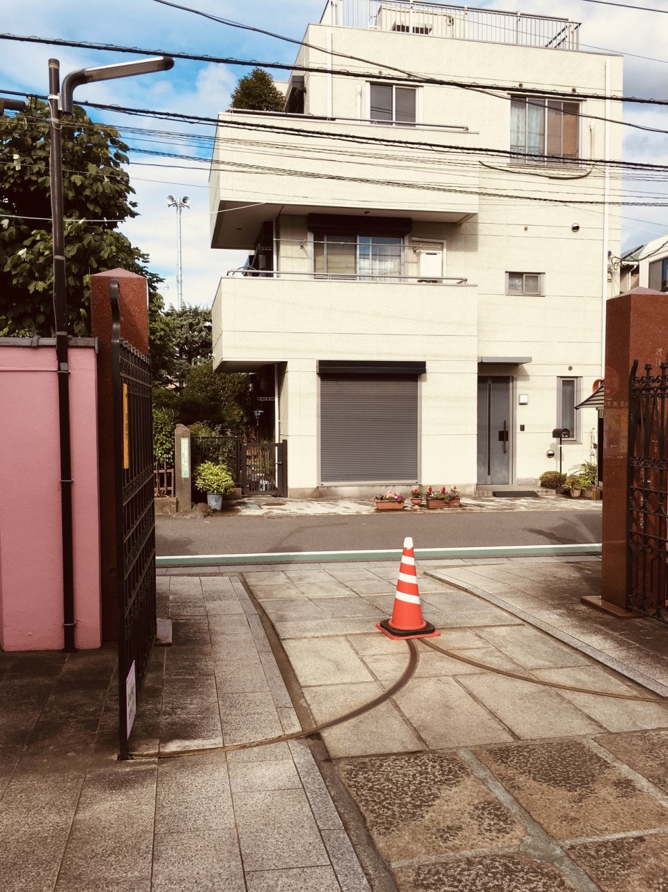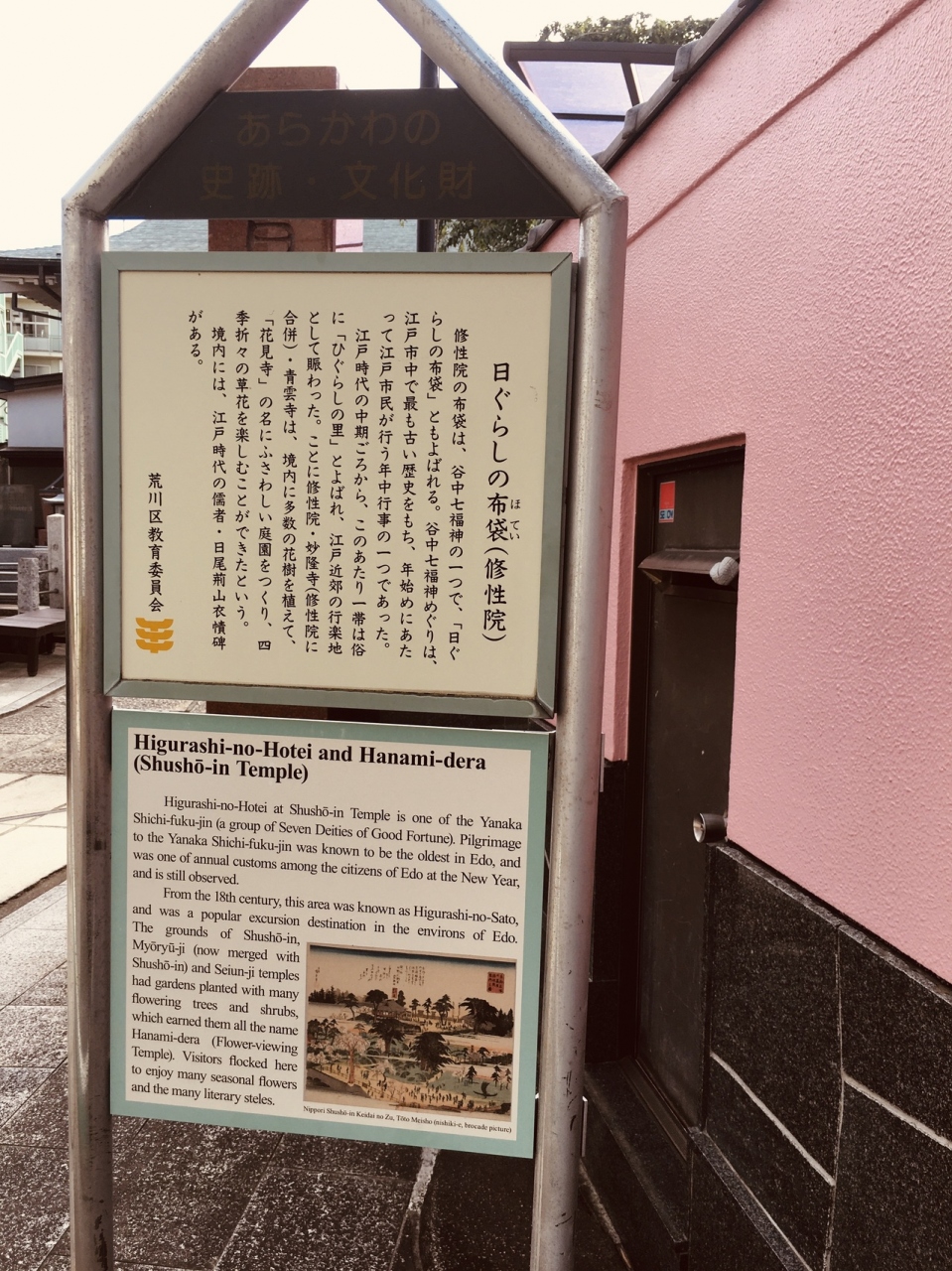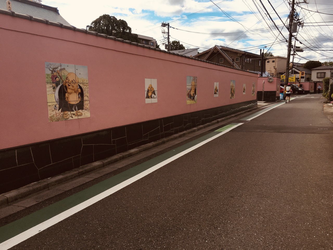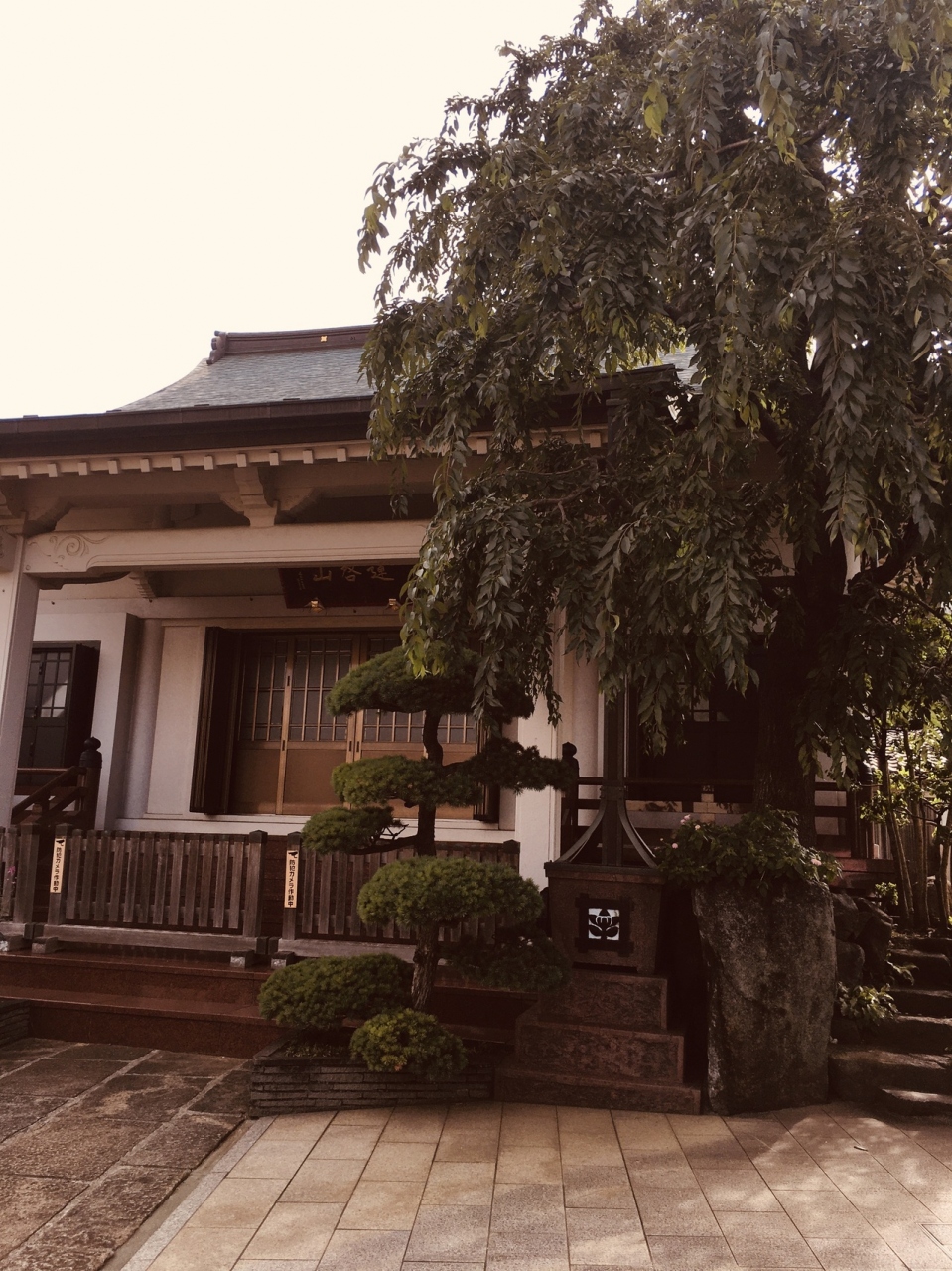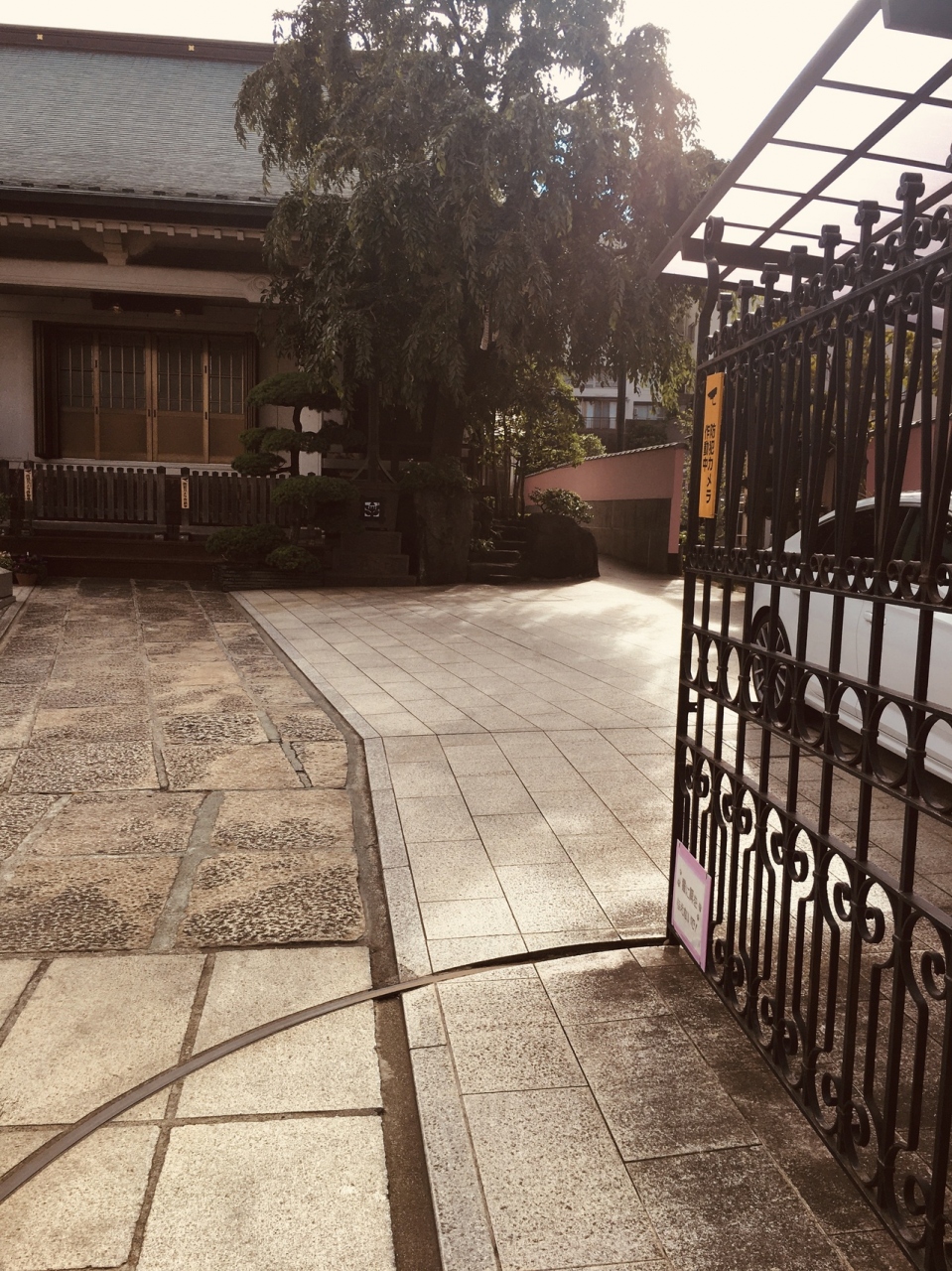 富士見坂を降りると左側にあり、坂からも墓地が見えました。道沿いの壁がピンクで目立ち、本堂も薄いピンク色でした。本堂前は駐車場になっていて、観光寺院ではではないので訪れる人もなく、ひっそりとしていました。周辺は住宅街です。