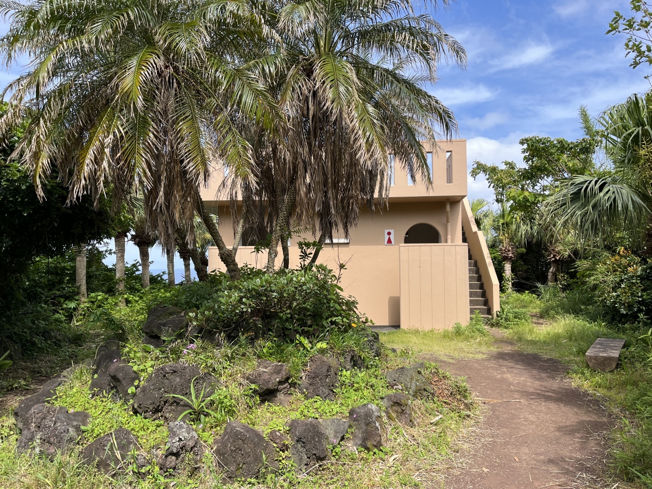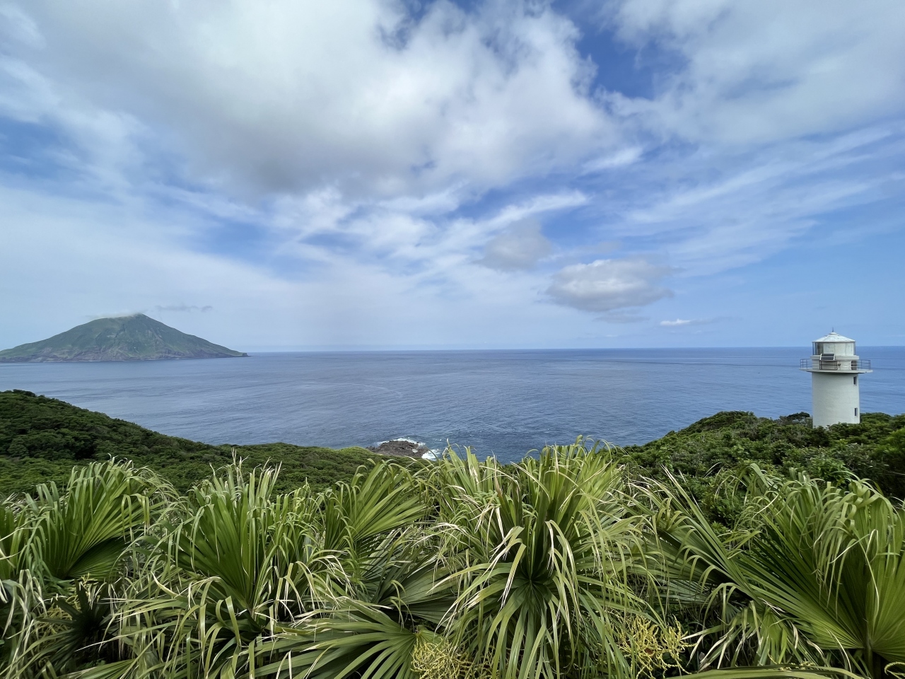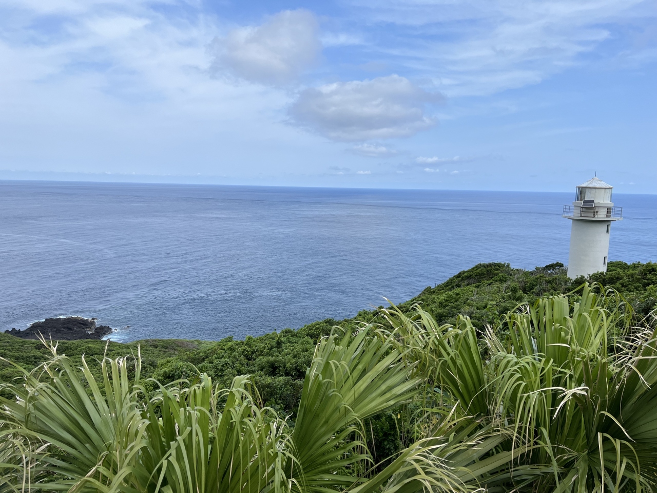 島の最北端にある展望台です。展望台といっても、二階建ての低いものでした。正面には海、後ろには八丈富士という立地です。低い展望台ですが、遮るものが無いので、正面に八丈小島が綺麗に展望できます。また展望台から歩いてアクセスできる大越鼻灯台も綺麗に見ることができました。