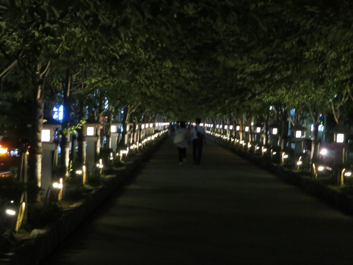 ずらりと並んだ灯籠のライトアップが美しく、気持ちのいい夜のおさんぽになりました。
