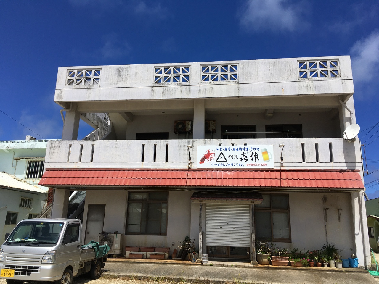 南大東島集落にあります。「喜作」は那覇空港の「ブルースカイ」や「ANAフェスタ」でも販売している大東寿司でお馴染みのお店です。南大東島の「喜作」さんは那覇の兄弟が出されているお店だそうですが、訪問時は定休日かどうか定かではありませんが閉店しておりました。ダルマ、ナワキリなど珍しい魚が食べられると聞いていただけに残念でした。