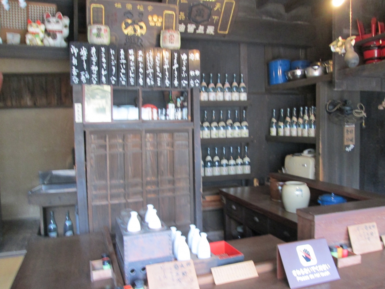 鍵屋は江戸東京たてもの園の中にあります。1856年(江戸時代末)に言問通りに建てられた居酒屋です。創建当時は酒問屋、その後酒の小売店、終戦後酒屋の営業を始めた。居酒屋を営業していたころの姿を復元しています。外観からだけでは居酒屋とは思えないような建物ですが、中に入ると土間の店以外にも帳場の隣には店座敷もあり、著名人も通った大きな居酒屋です。一升瓶、酒徳利、熱燗用加温機、酒の肴のメニュー等が展示されていて、のんべえさんにとっては興味がわく施設ですね