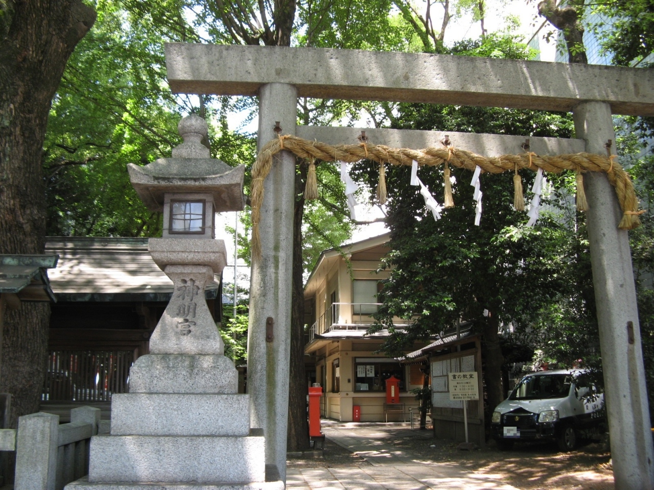 現地にあった由緒書きによると、慶長十六年(1611年)名古屋城の築城にともなって、清須城下から基盤割り城下町の守護神として現在の地に移築されたとか。社殿など主な建築物は先の戦災で焼失し、その後再建されたもので歴史的な雰囲気を感じるものではありませんでしたが、境内には大きな木々も多く繁華街の中にありながらホッとするスポットでした。