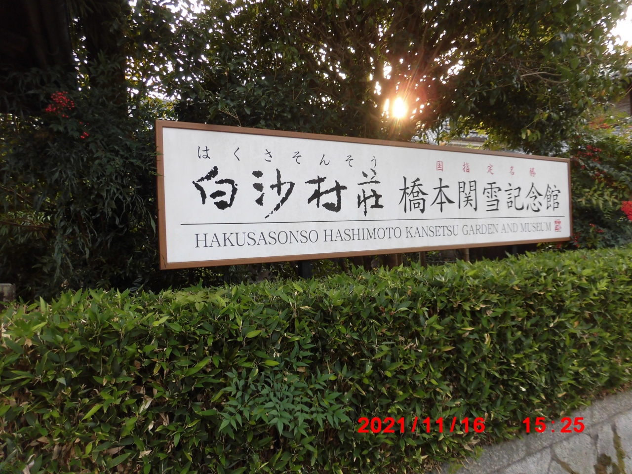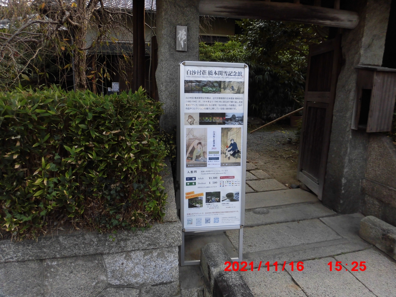 京都市観光で立ち寄りました。白沙村荘橋本関雪記念館は、銀閣寺からの帰り道に見つけた博物館で、日本画家、橋本関雪さんが自身の制作を行うアトリエとして造営した邸宅で、10000平方メートルの敷地内には大正〜昭和初期に建築された居宅、日本画の制作を行っていた3つの画室、茶室、持仏堂などの建造物が散在しているそうです。立ち寄った時間が遅かったのと、哲学の道や銀閣寺などを歩き疲れていたので見学は次回に持ち越しです。