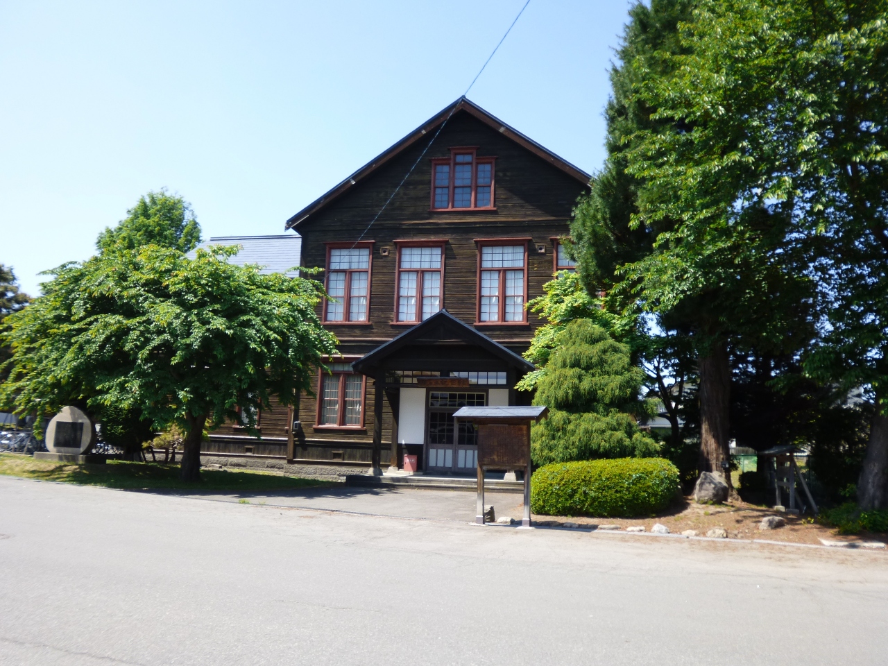 弘前公園の南方1㎞位のところに弘前高校があります。創立は明治17年という歴史ある高校で、明治26年から現在の場所にあるそうです。その敷地内に鏡ヶ丘記念館があります。明治26年に青森県尋常中学校の校舎として建てられた木造二階建ての洋館の一部だそうです。授業中のようでしたが、外観だけ、静かに見学させていただきました。
