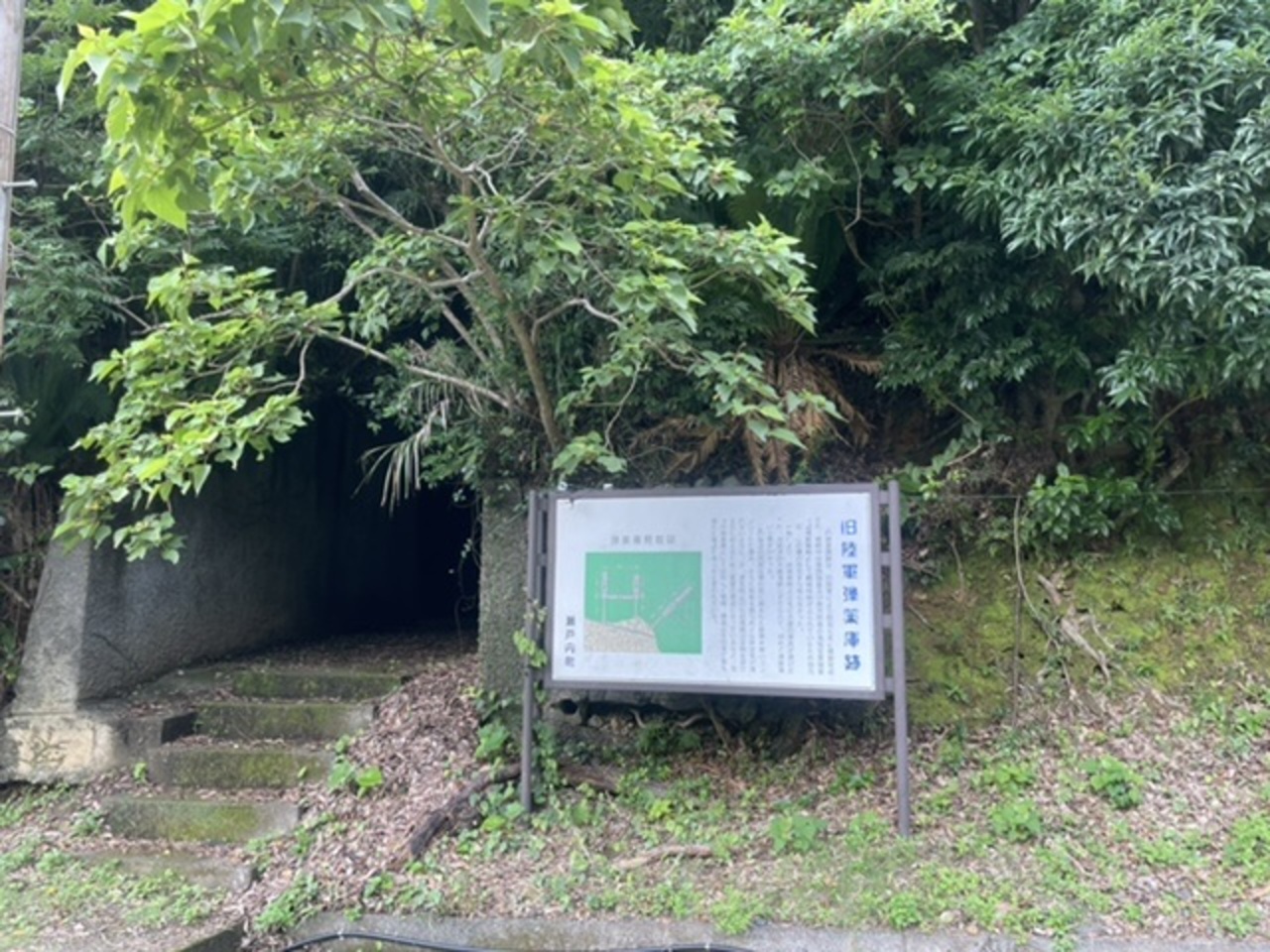 県道から少し脇道に逸れた場所にある弾薬庫跡。