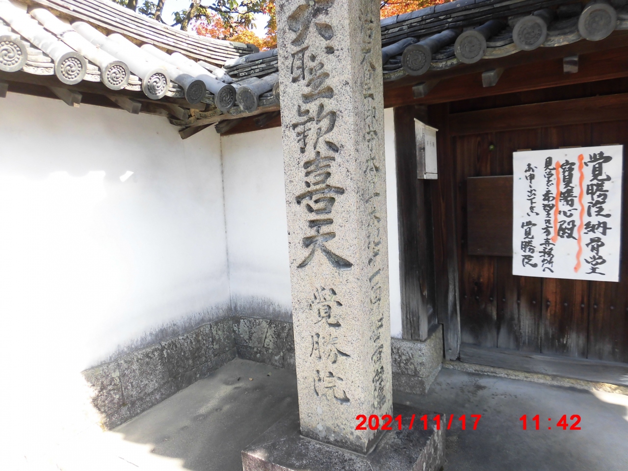 京都市観光で立ち寄りました。覚勝院は、有栖川と大覚寺平岡線通りを挟んで大覚寺の南に位置し、旧嵯峨御所大覚寺を守護する唯一の塔頭寺院として約700年間嵯峨天皇の陵をお守りする聖舎大覚寺を守護する役割を担っていますとのことでした。「心身の毒が消え、八福に浴する」聖天様の大根供養で有名です。