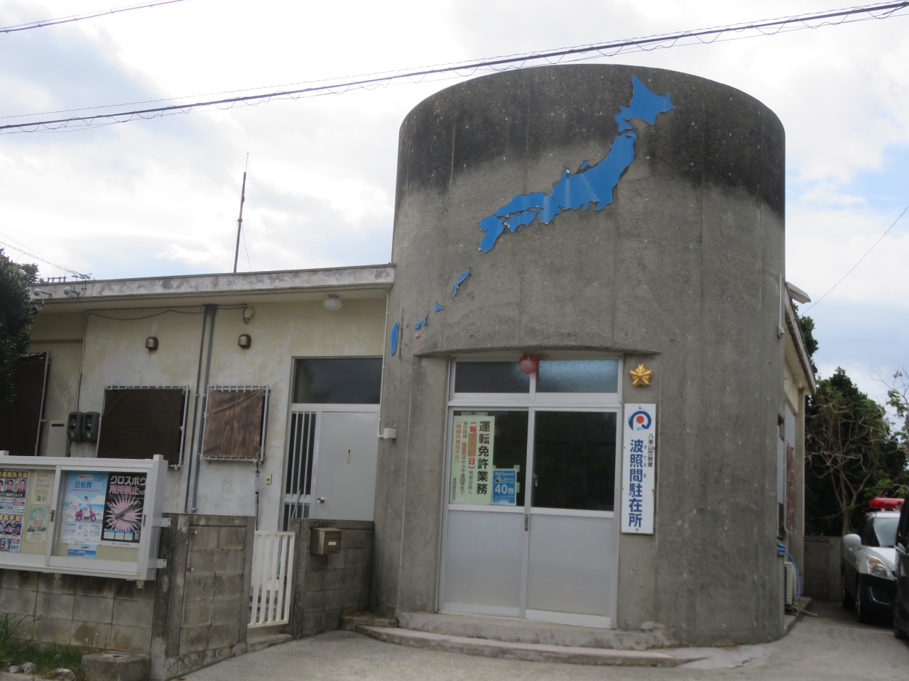集落にある波照間駐在所。行ってみると大きな日本地図がかかれています。なぜ日本の地図がと思ってよく見ると沖縄の下、波照間島のあたりが赤くなっていました。小さいのでよく見ないとわかりません。外観が面白い駐在所だなと思いました。