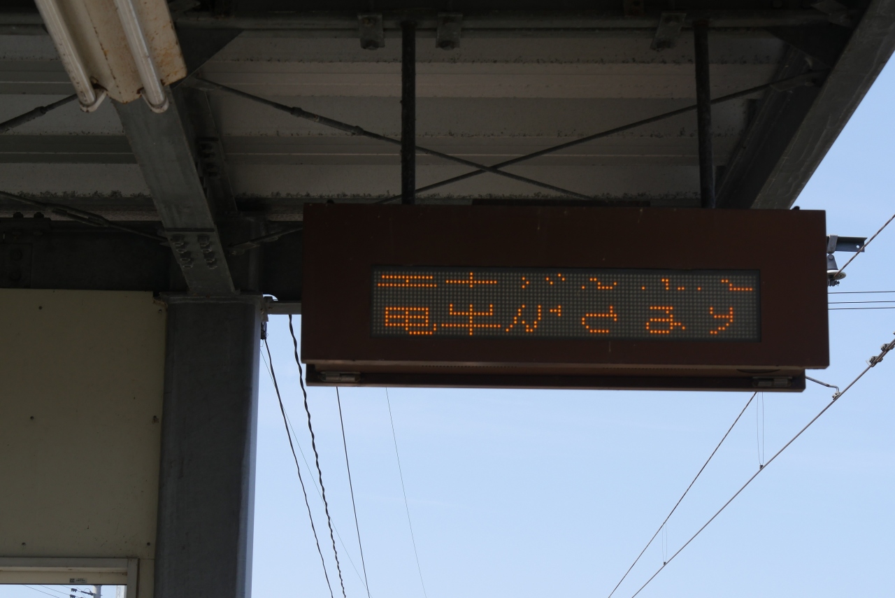ホーム1本の停留所駅ですが、ホームのコンクリートも新しく、また電光掲示板の案内板もありました。