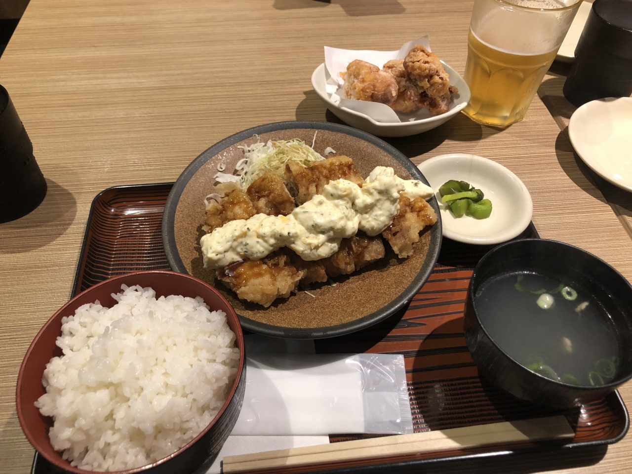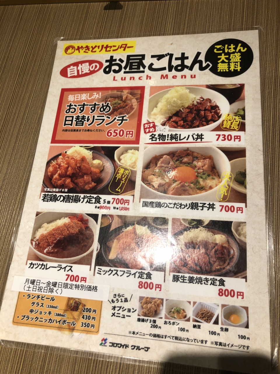 横浜天理ビルの地下1階に入っています。平日のランチで利用しました。ランチは、親子丼や唐揚げなどがメニューにあり、リーズナブルな値段設定でした。また、ランチでも、焼き鳥などの一品メニューも注文できて、アルコールもいただけます。