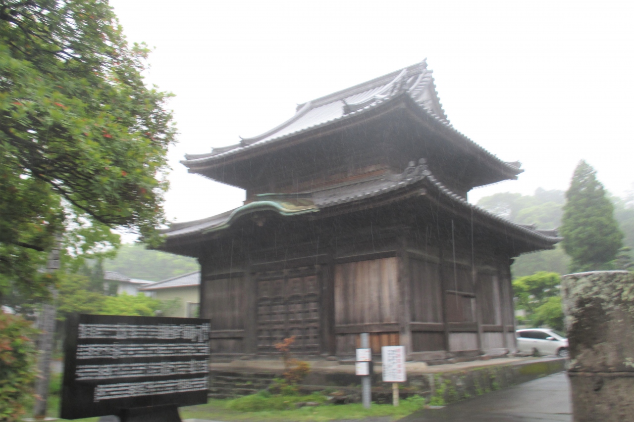金剛宝戒寺は上野丘の東の台上といったところにありました。周辺の道は狭い上に、駐車場のないお寺さんでした。お寺さんとしての境内が纏まっていませんから、ここは何があったお寺さんなのかなぁと思いました。727年(神亀4年)に行基によって開創されたと伝わる古寺です。現在地には1307年(徳治2年)に、大友氏6代当主・大友貞宗によって大伽藍が築かれたそうですね。府内藩3代目藩主・日根野吉明が再建したという現在の中門前にある大日堂はその伽藍の名残だということです。門柱のみの山門のすぐ先にありますから、過去の栄光はどこに・・・といった感じでした。なお、山号は清龍山で、高野山真言宗のお寺さんです。