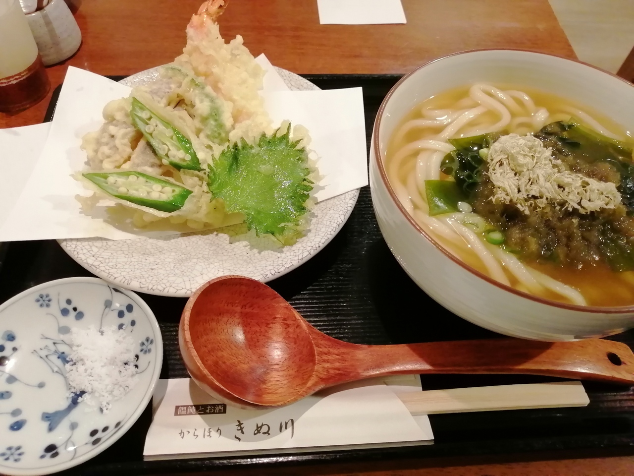 平日のランチタイムに伺いました。ぶっかけばかり食べていたので、温かいうどんにしました。近くの昆布屋さんの昆布を使ったうどんと天ぷらという、ちょっと贅沢なメニューにしてみました。お出汁もおいしかったのですが、なぜか毎回最後まで食べる前に味に飽きてきてしまいます。