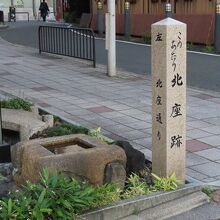 江戸初期には四条河原に七か所も常設の芝居小屋があったのだそうです。それが幕末には南座とこの北座だけになってしまい、その北座も明治中期には取り壊されてしまいました。単純に南座の向かいにその痕跡があるかと思いきや、石柱のある場所はワンブロックほど北寄りの「井筒八ツ橋本舗」のお店の前にありました。