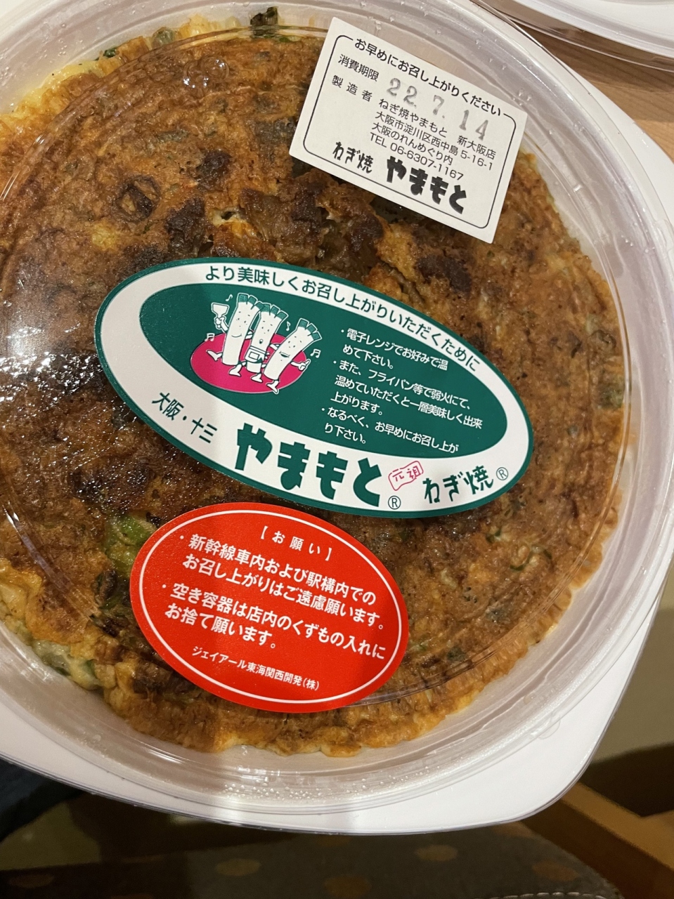 新大阪の新幹線改札内にあるお店。チーズとんぺい焼きと、ネギ焼きをテイクアウト。とんぺい焼きは関東と違い豚肉が1ミリ?ぐらいの厚さの豚肉で作られていました。ネギ焼きはスジと蒟蒻がバランスよく、醤油とレモンの組み合わせが独特だと思いました。