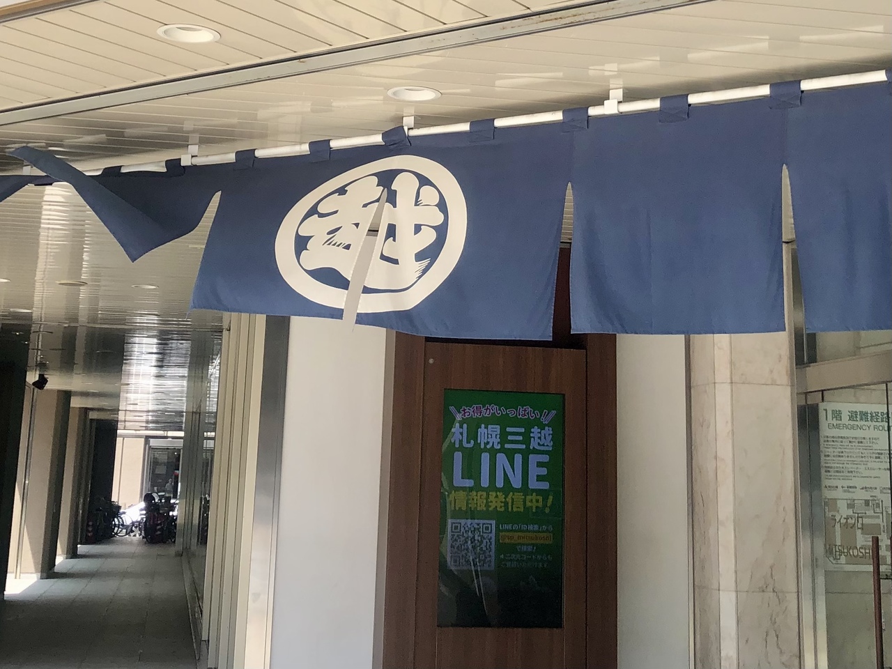 三越札幌店は、1932年に、札幌では3番目の百貨店として開業した老舗です。当時は3大百貨店と呼ばれ、店名が開業時から変わっていないのは、三越札幌店だけだそうです。入口には、定番のライオンの銅像と、紫の暖簾が掛けられています。いつも仕事帰りに地下食料品売り場で、惣菜を買って利用しています。