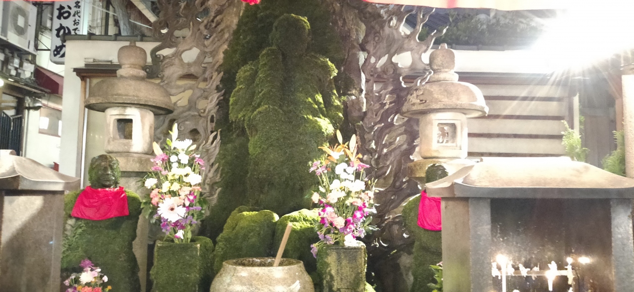 苔むす姿の不動尊が有名ですが、誰かわかりませんが、なんと!柄杓で一部の苔はがされました。