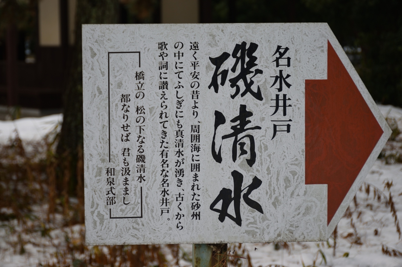天橋立の中にある井戸です。砂嘴部分の松林の中にある井戸です。一口はげに千金の磯清水と俳句にも詠まれる名水で天橋立神社の傍の湧き水です。ポンプ式で今もくみ上げることができるようになっています。不思議な名水として言い伝えられています。