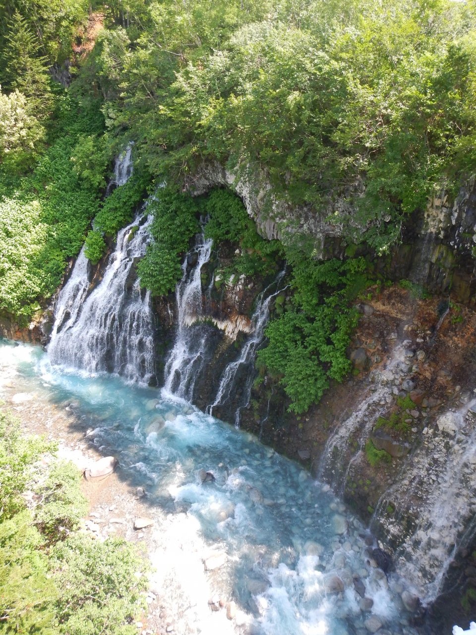 濁っていた「青い池」でガッカリした後、近くにあるこちらの滝へ移動した。それが、滝の水が青く澄んでいてとても綺麗だった。橋の上から眺めたり撮影したりで、景観を楽しめました。野鳥もさえずっていて気持ちのよい観光地でした。