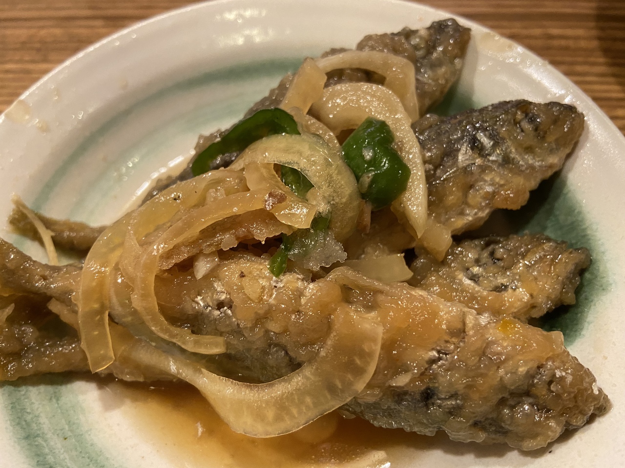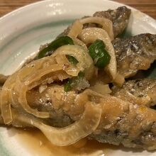 いつも何やら賑わっているお店に、入ってみました。テーブルの上にはアクリル板が置いてあります。メニューがものすごく多くて、注文を決めるのに迷います。アジの南蛮漬けは、味付けの加減が絶妙ですごく美味しかったです。