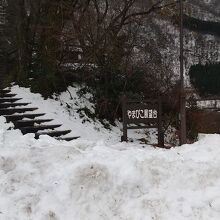 とても小さな展望台ですが 新山彦橋を走るトロッコ電車を見ることが出来ます。