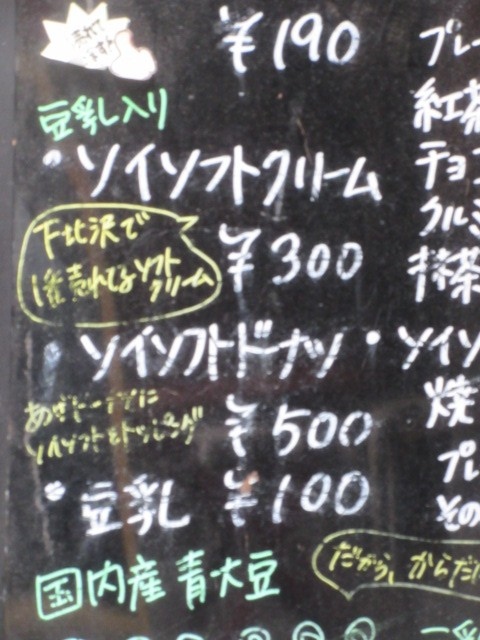 下北沢にあるドーナツのお店です。商店街内にあって看板などもあってわかりやすいと思います。無添加、無調整の大豆を使ったドーナツですので、優しい味わいでとてもおいしい。値段も200円ほどなのでいいです。大豆を使ったソフトクリームもあるので暑い日にはいいかも。