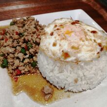 平日のランチタイム、何度か行って見ましたが混んでいて入れず。なんとか今日初めて入ることができました。日替わりもありましたが、バジルのひき肉炒めをオーダー。TAKEOUTも同時にしているせいか、多少提供までに時間はかかりましたが、安くてボリュームあって美味しいです。