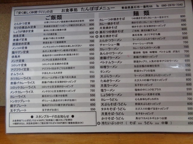 ネットで見つけて行ってみました.黒石駅から歩いて数分の場所にあります.メニューは沢山ありますが,黒石つゆ焼きそば550円を注文してみました.ソースと麺が良く合ってとても美味しかったです.他のメニューも皆安価で良かったです.