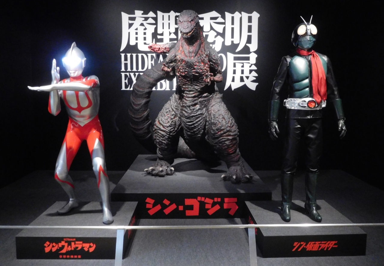 会場入り口には庵野監督の仮面ライダー姿が出迎えてくれます。