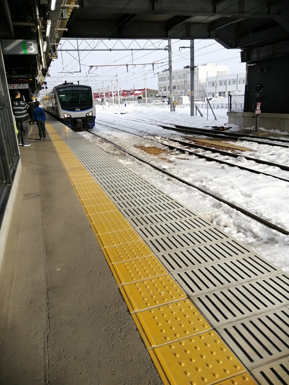 五所川原に行くために,弘前~五所川原間を利用しました.特急電車なので特急料金530円が必要ですが,各駅停車と比べると40弱で到着できます.短い時間でしたが,車内では色々なイベントがあるようで,この日は陸奥鶴田駅までの間に津軽弁の語りがありました.また,車内に「乗車証明書」が置いてあり,これを提示すると斜陽館などの施設が割引料金で入れました.乗心地も良く,短い距離でもお勧めの電車です.
