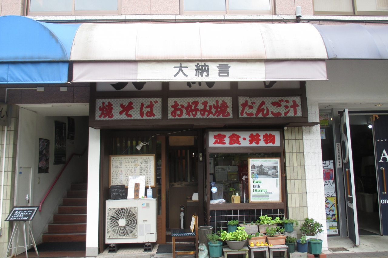 府内五番街商店街を散策していると、昭和レトロぷんぷんといった感じのお店がありました。大納言という滅多に聞くことのない店名です。赤文字で「焼きそば」「お好み焼き」「だんご汁」とあり、その上に金網が掛っていました。そういえば、昔、破損防止にこんなのを見た気がします。その下には、やはり赤で「定食」、「丼物」とありました。ちょっと、覗いて見たい気がしますが、休憩時間帯でした。メニューを見ると、昭和レトロとまではいきませんが、庶民派の値段が付いていました。