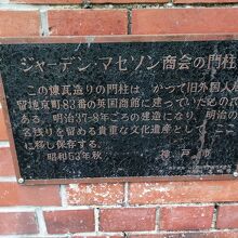 かつて三宮駅と神戸港の間の旧外国人居留地にあったジャーデンマセソン商会(旧英国商館)の門柱を移築したものです。レンガ造りで味わい深いものですが、なにせ門柱だけなのであまり見応えはありません。