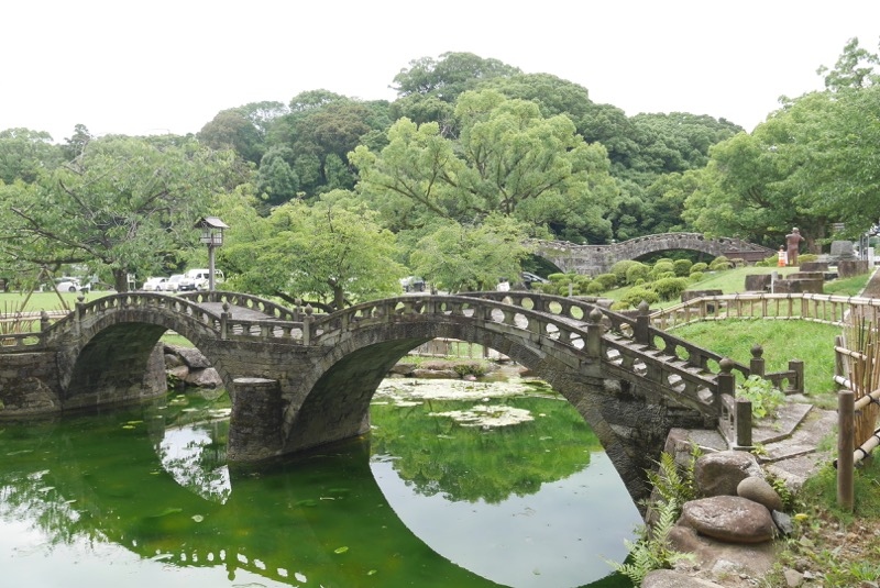 ここを訪れたあとに長崎の眼鏡橋も行きましたが、こっちのほうが好きかも。と思いました。でかい眼鏡橋の手前に、眼鏡橋の模型(といってもこれも立派な大きさ!)があるのでダブル眼鏡橋を楽しめるのがいいなと思いました。メガネの形状も、こちらのほうが楕円形なのも個人的に眼鏡感upで好きです。