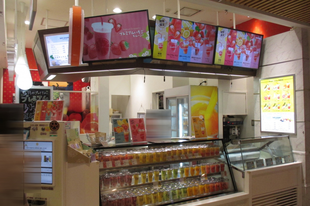 くだものかふぇ大分駅店は豊後にわさき市場にありました。くだものかふぇは本社が宇佐市という地元の会社なのですね。店舗は九州一円ということですから、道理で見掛けたことがないはずです。「安心」・「おいしい」・「ヘルシー」がモットーだそうですが、間違いなく、美味しかったです。ところで、券売機でチケットを購入して、店員さんに渡すと、カットされたフルーツをその場でジュースにして出してくれます。期待通りの美味しさでした。ところで、券売機ですが、1回毎にスクリーンクリーニングがされているとは思えません。お客さん同士の接触は起きますね。コロナ下ではちょっと心配です。