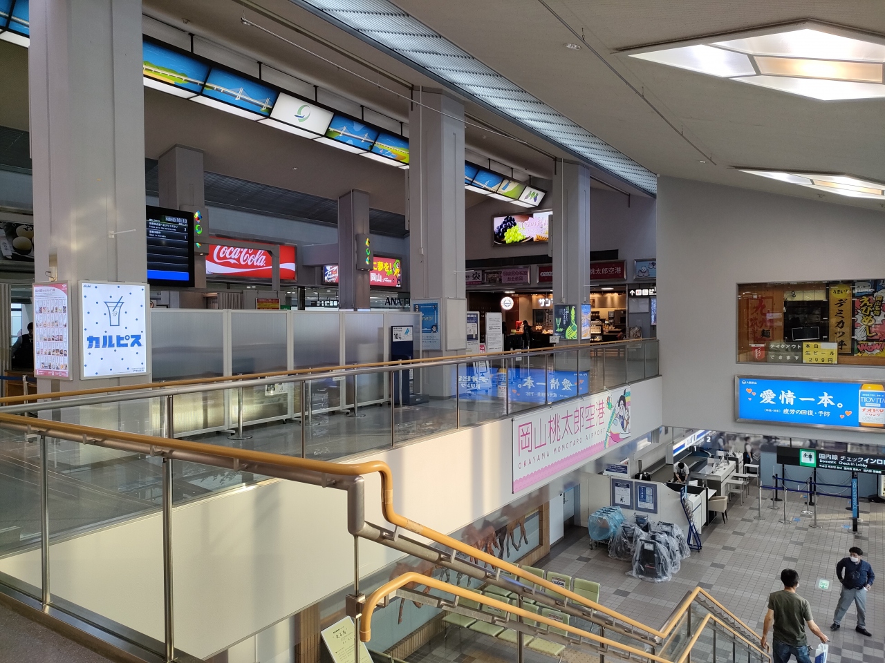 ショップは地方空港としては十分な広さがあり、帯広空港のように限られた店舗空間を複数の店で分割し、どこも似た商品しかないという欠点は岡山はない。