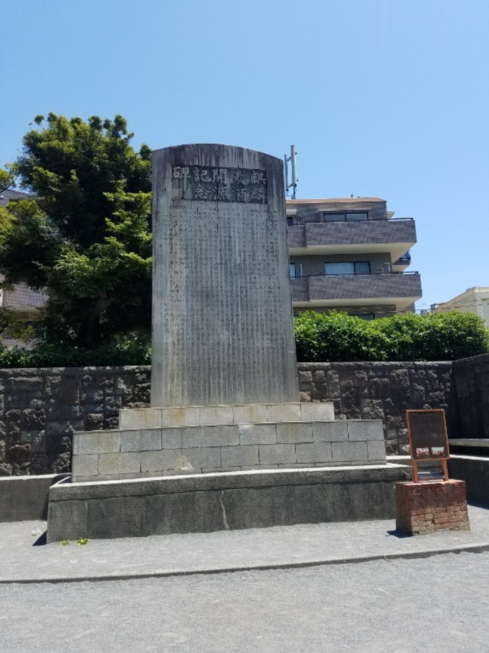 北方皇太神宮から歩いて行きました。キリンの遊具でもあるのかなと思ったらそうではなく普通の遊具がありましたがそれよりも異様に大きな石碑がありました。漢字で麒麟とあるのでピーンと来ましたが今は生麦にあるキリンビール工場の前身があったのですね。そして何よりここが日本のビールの発祥地とのことで少しキリンビール贔屓になりました。
